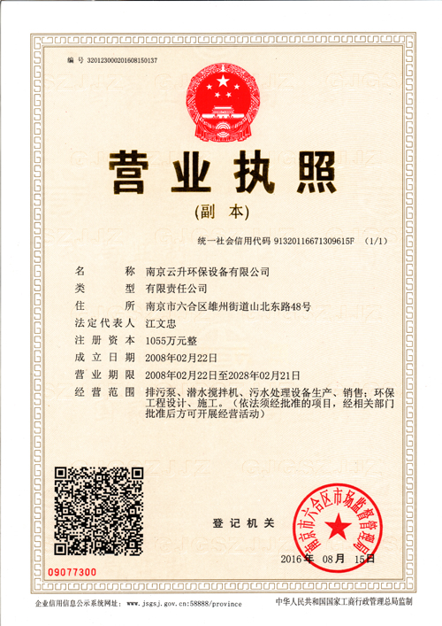 專業(yè)的各類水處理工程、水處理專用設備及泵類產品生產服務商南京云升環(huán)保設備有限公司占地面積二萬三千五百平方米,建筑面積約七千八百平方米,現(xiàn)有員工195名,各類工程技術人員41人,其中中高級以上22人,企業(yè)擁有各類大型專用機械72臺套,其中試驗臺3套,動靜平衡機4臺,各類機床28臺,CNC數(shù)控車床4臺,各類焊接設備19臺,各類起吊設備8臺套,交通、運輸工具8輛,為產品開發(fā)、生產制造、質量控制、快速服務提供了強有力的保障。南京云升環(huán)保設備有限公司全體員工愿以環(huán)境保護為己任,以市場為導向,以優(yōu)質服務為原則,嚴格的管理、先進的生產工藝、至上的品質、完善的售前售后服務,與廣大新老用戶攜手并進,共鑄輝煌。